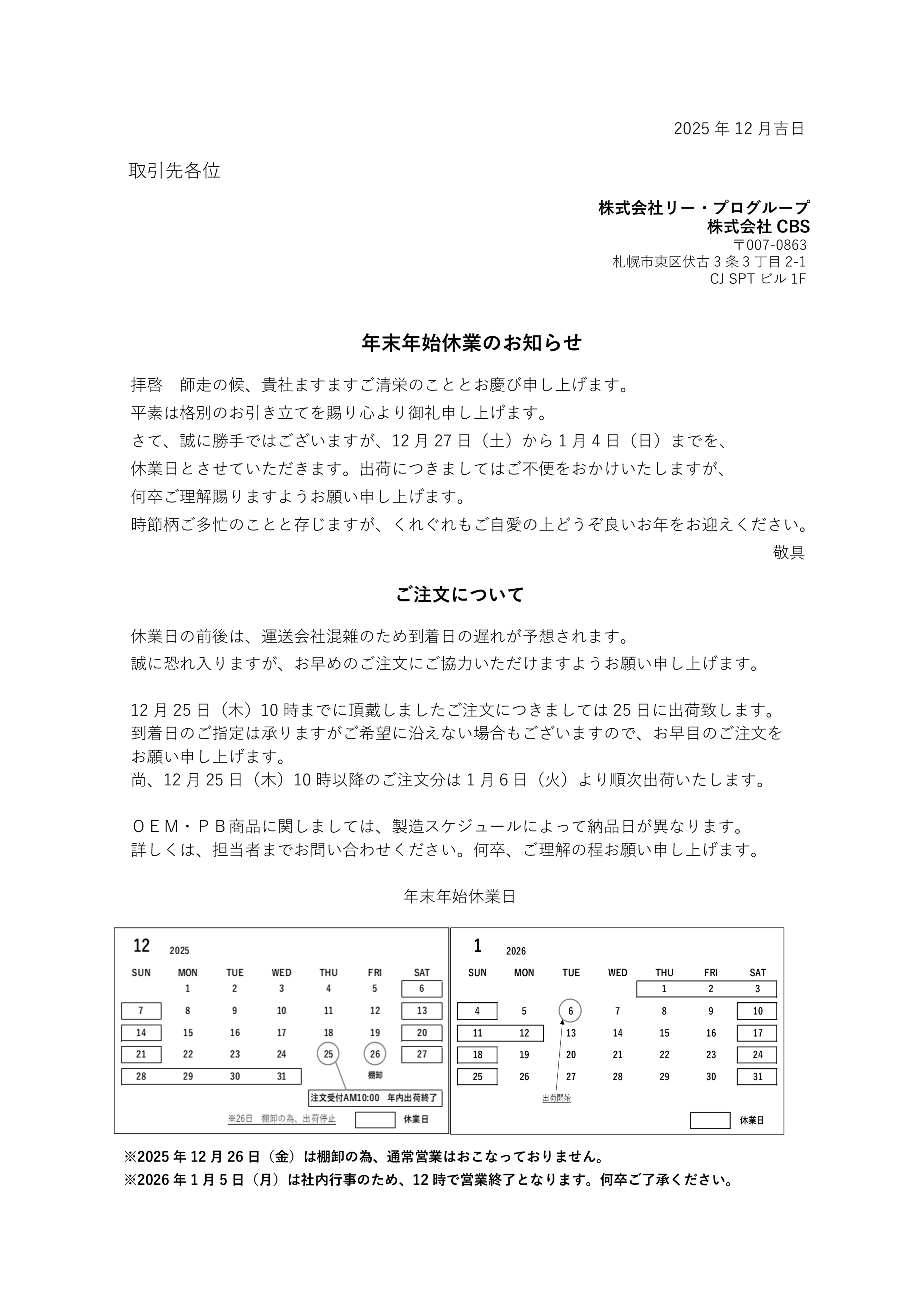 年末年始休業のお知らせ